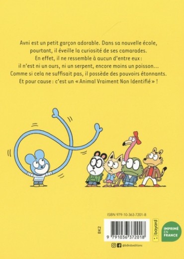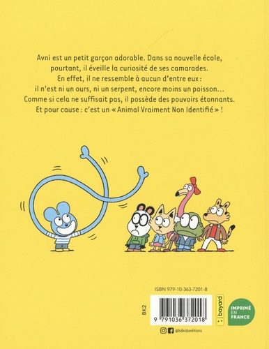 Avni est un petit garçon adorable. Dans sa nouvelle école, pourtant, il éveille la curiosité de ses camarades. En effet, il ne ressemble à aucun d'entre eux : il n'est ni un ours, ni un serpent, encore moins un poisson... Comme si cela ne suffisait pas, il possède des pouvoirs étonnants. Et pour cause : c'est un "Animal Vraiment Non Identifié" !