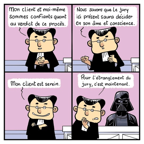 Le livre raconte, en cent strips, le quotidien d'un avocat, entre le tribunal, le parloir, la prison et son domicile, qui passe son temps à défendre des cas impossibles. Hitler, King Kong, Kim Jong-un, Dark Vador... Qui de mieux que l'avocat du diable pour défendre tous les meurtriers issus de l'Histoire et de la culture populaire ? Ces chers accusés mettent donc leur avenir entre ses mains. Et si notre personnage emprunte ses traits à Jacques Vergès, ce n'est bien entendu que pure coïncidence. Comme personne n'est fait de marbre, ces cas impossibles à défendre pourront avoir une influence sur sa vie intime.