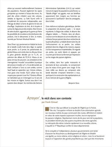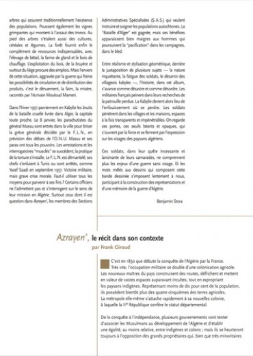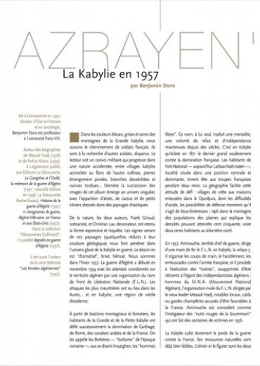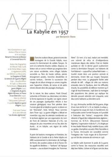 Au cœur de la guerre d'Algérie, un homme est l'objet de toutes les recherches. Pour l'armée française, il est le lieutenant Messonnier, disparu avec ses hommes depuis deux semaines. Pour Taklhit, la jeune institutrice berbère, il est Francis, l'amour de sa vie. Pour les Kabyles, il est Azrayen', l'Ange des ténèbres... Azrayen', un sujet sensible, une œuvre forte et humaine. Profondément humaine.