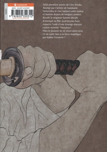 1558, première année de l'ère Eiroku. Assiégé par l'armée de Sadakane Yamashita, le clan Satomi subit misère et famine depuis de longues années. Acculé, le seigneur Satomi décide d'envoyer sa fille, la princesse Fuse, requérir l'aide d'une étrange divinité canine nommé "Yatsufusa". Mais le pouvoir de ce chien divin sera-t-il de taille face à la force maléfique qui habite l'ennemi ?