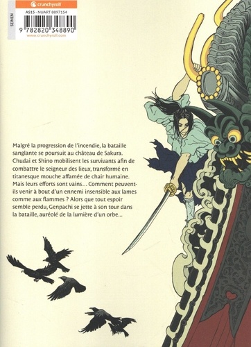 Malgré la progression de l'incendie, la bataille sanglante se poursuit au château de Sakura. Chudai et Shino mobilisent les survivants afin de combattre le seigneur des lieux, transformé en titanesque mouche affamée de chair humaine. Mais leurs efforts sont vains... Comment peuvent-ils venir à bout d'un ennemi insensible aux lames comme aux flammes ? Alors que tout espoir semble perdu, Genpachi se jette à son tour dans la bataille, auréolé de la lumière d'un orbe...