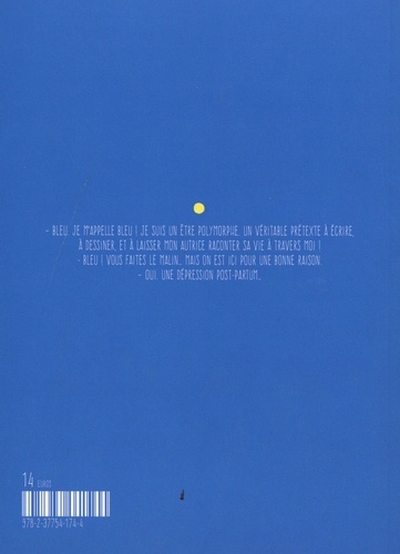 Dépression post-partum : la vie en bleu. Bleu, c'est une femme. Bleu, c'est une mère. Bleu, c'est aussi la dépression qui vient s'insinuer sournoisement dans chaque pensée, chaque geste, chaque parole. Si Jaune en est la raison, elle n'en est cependant pas la cause. Avec Baby Bleu, Marion Nail nous partage son désarroi, sa colère et ses angoisses, syndromes d'une dépression post-partum venue s'installer sans crier gare. Les réflexions intimes de Bleu, alter ego sphérique de l'autrice, alternent avec les échanges qu'elle entretient avec sa thérapeute qui, petit à petit, la mènent vers la voie de la reconstruction. Ce récit intime s'adresse aussi bien aux mères qu'aux pères qui peuvent, eux aussi, être touchés par la dépression post-partum. L'ouvrage s'achèvera sur une réflexion d'une psychologue, illustrée par l'autrice.