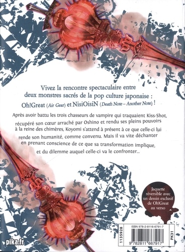 Après avoir battu les trois chasseurs de vampire qui traquaient Kiss-Shot, récupéré son coeur arraché par Oshino et rendu ses pleins pouvoirs à la reine des chimères, Koyomi s'attend à présent à ce que celle-ci lui rende son humanité, comme convenu. Mais il va vite déchanter en prenant conscience de ce que sa transformation implique, et du dilemme auquel celle-ci va le confronter...