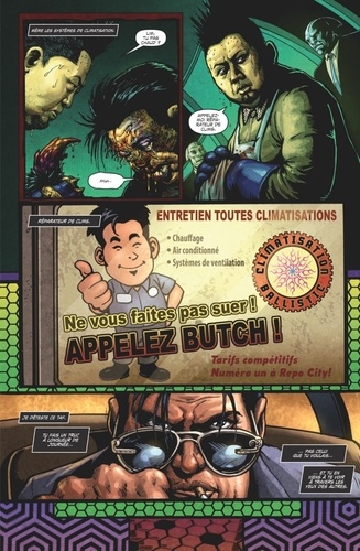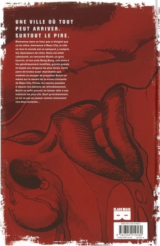 Bienvenue dans la ville où tout peut arriver. Surtout le pire. Bienvenue dans un futur pas si éloigné que ça du nôtre, bienvenue à Repo-city, la ville où tout le monde est un salopard, y compris les réparateurs d'air conditionné. Dans cet enfer cyberpunk, on rencontre Butch, un gros bourrin, et son pote Gun, une arme à feu génétiquement modifiée, grande gueule et dopée aux drogues les plus dures. Cette paire de brutes aussi improbable que violente va essayer de propulser Butch lui-même sur le devant de la scène criminelle de Repo City. Finies les heures passées à réparer les stations de refroidissement, Butch va enfin pouvoir se laisser aller à ses instincts les plus vils. Sauf qu'évidemment, ça ne va pas se passer comme aimeraient nos deux acolytes... Après le culte Transmetropolitan, Darick Robertson s'associe au cinéaste Adam Egypt Mortimer et nous plonge dans une nouvelle métropole futuro-psychédélique où se mêlent SF, polar, pulp et anticipation dans un cocktail nihiliste parfaitement jubilatoire. Un " buddy movie " grand-guignolesque et ultra violent à la manière de The Boys qui emprunte autant à la littérature de William Gibson qu'à Judge Dredd.