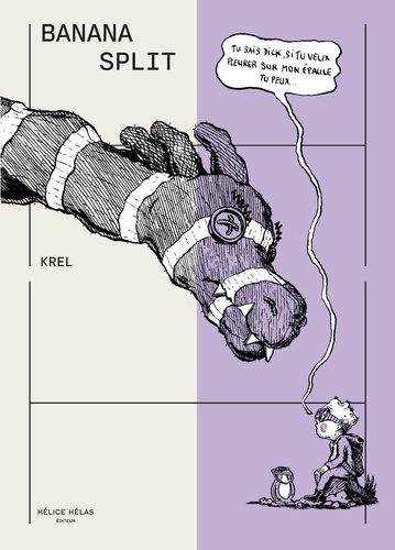 Banana Split est un conte qui interroge les enjeux de vérité, de croyance et de pureté dans un univers qui se caractérise par son rapport à la brutalité, à l'absurde et à la violence. Mais ce conte est aussi celui du récit lui-même, de celui que le porte, le manie et le déforme selon ses propres perspectives. Entre les références populaires, les trouvailles pour rendre compte de la mémoire et de la voix, les jeux sur les couleurs et les ambiances, l'artiste Krel offre une impressionnante fresque polyphonique et graphique sur l'incroyable capacité des Humains à mettre en scène la parole.