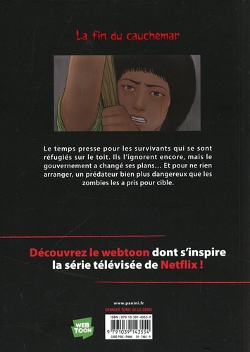 Le temps presse pour les survivants qui se sont réfugiés sur le toit. Ils l'ignorent encore, mais le gouvernement a changé ses plans... Et pour ne rien arranger, un prédateur bien plus dangereux que les zombies les a pris pour cible. Découvrez le webtoon dont s'inspire la série télévisée de Netflix !