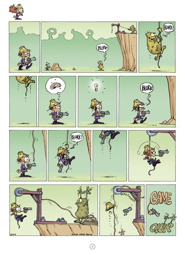 L'avatar de Kid Paddle est de retour ! Malchanceux depuis la nuit des temps, le Petit Barbare, double virtuel de Kid Paddle, a déjà fini brûlé, transpercé de toutes parts, découpé en tranches, dévoré, désintégré, écrabouillé, noyé... Il faut dire qu'entre les successions de pièges vicieux, cette princesse gourde à souhait qu'il faut sauver et ces blorks plus bêtes que méchants, le Petit Barbare a fort à faire s'il veut se sortir vivant des redoutables labyrinthes qui peuplent son monde virtuel. Voilà déjà onze albums que ses aventures imprévisibles se soldent systématiquement par un implacable "game over "... or il ne semble pas près de prendre sa retraite, et c'est tant mieux ! Best-seller dès le premier tome, Game Over, la série spin-off et déjantée de Kid Paddle s'est aujourd'hui vendue à plus d'1 million d'exemplaires ! Elle fait son entrée au catalogue Glénat pour une nouvelle fournée de gags muets hilarants et trash à souhait, tous plus inventifs les uns que les autres. Un véritable exercice de style dans lequel Midam donne la parole aux internautes qui peuvent proposer des idées de scénarios grâce au site www. gameoverforever. com. Et rassurez-vous, tout cela n'est qu'un jeu... vidéo.