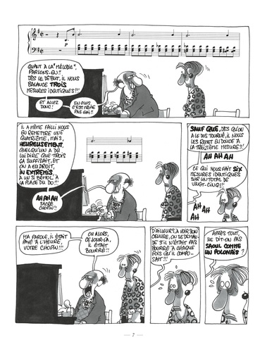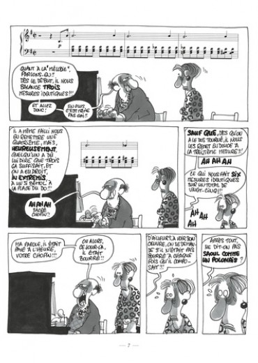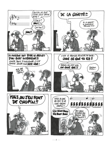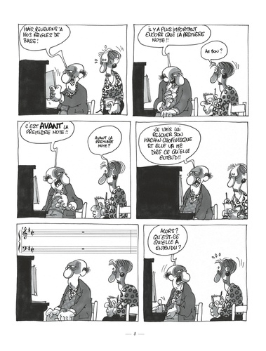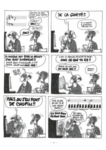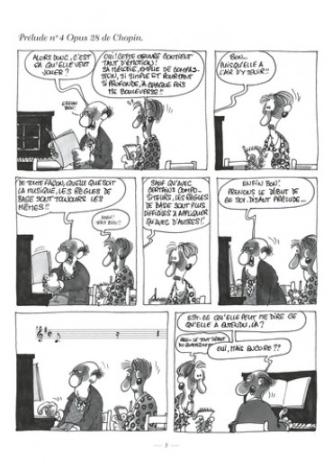 Christian Binet, créateur des fabuleux Bidochon, se passionne depuis toujours pour la musique classique. C'est d'ailleurs un compositeur et un instrumentaliste de talent. S'inspirant de son expérience des us et coutumes des musiciens amateurs, il dresse un hilarant portrait de cette faune étrange : professeurs frustrés, élèves sans talent, concertistes querelleurs et autres spécimens délirants. Haut de gamme dresse un portrait jouissif et iconoclaste dans lequel se retrouveront tous les amoureux de musique.