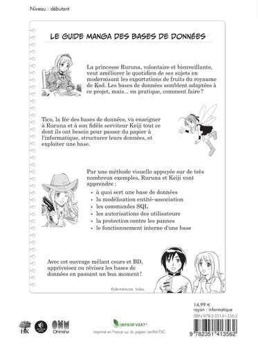 La princesse Ruruna, volontaire et bienveillante, veut améliorer le quotidien de ses sujets en modernisant les exportations de fruits du royaume de Kod. Les bases de données semblent adaptées à ce projet, mais... en pratique, comment faire ? Tico, la fée des bases de données, va enseigner à Ruruna et à son fidèle serviteur Keiji tout ce dont ils ont besoin pour passer du papier à l'informatique, structurer leurs données, et exploiter une base. Avec cet ouvrage mêlant cours et BD, apprivoisez ou révisez les bases de données en passant un bon moment !