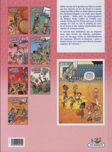 La BD pour être bien dans son basket ! Défier les lois de la gravité pour faire le smash qui tue, devenir un pro du shoot à 3 points, inviter les filles à faire un entre-deux ou porter les dernières fringues à la mode pour épater la galerie... Telles sont les préoccupations de Markus, Rudy, Coffee ou Freddie, une bande d'ados qui n'ont d'yeux que pour la balle orange. En club ou sur le parking du coin, ils se livrent à des matchs impitoyables pour devenir le prochain seigneur de l'anneau.