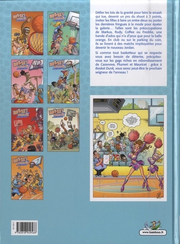 La BD pour être bien dans son basket ! Défier les lois de la gravité pour faire le smash qui tue, devenir un pro du shoot à 3 points, inviter les filles à faire un entre-deux ou porter les dernières fringues à la mode pour épater la galerie... Telles sont les préoccupations de Markus, Rudy, Coffee ou Freddie, une bande d'ados qui n'ont d'yeux que pour la balle orange. En club ou sur le parking du coin, ils se livrent à des matchs impitoyables pour devenir le nouveau seigneur de l'anneau. Inclus : un cahier de 8 pages réalisé en partenariat avec la FFBB