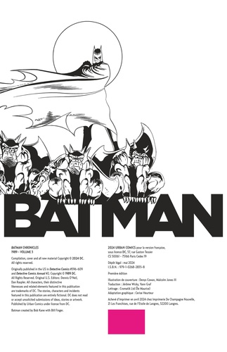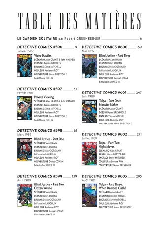 Au sommet de sa popularité, Batman continue de marquer son empreinte sur le comics alors que la fin des années 1980 se profile. Alan GRANT et Norm BREYFOGLE continuent leur run inoubliable sur la série et Sam HAMM, le scénariste du film Batman de Tim BURTON, signe le récit "Blind Justice", qui mettra le justicier masqué autant que son alter-ego Bruce Wayne face à de nouveaux périls. Cette fin d'année 1989 et son numéro #600 est également l'occasion de souffler les 50 bougies du Chevalier Noir, en invitant un parterre d'invités exceptionnels à participer à l'écriture du mythe.