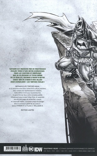 Gotham est menacée par de mystérieux ninjas venus d'une autre dimension. Pour les contrer et empêcher que ne se déchire le tissu même de la réalité, Batman n'aura d'autre choix que de s'unir à des alliés bien singuliers : les tortues ninja ! Batman & les tortues ninja, ou la rencontre entre deux icônes de la culture populaire, deux univers aux représentations multiples. Cette édition inclut pour la première fois en grand format deux récits complets publiés initialement sous le label Urban Kids, et rassemble plus de cent pages de recherches, croquis et crayonnés inédits. L'occasion unique de plonger dans le processus créatif de ses auteurs : James Tynion IV et Freddie E. Williams II.