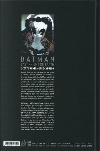 Lancé dans un mystérieux jeu de piste à travers Gotham, Batman est neutralisé puis se réveille dans l'Asile d'Arkham où Alfred lui apprend qu'il en est, en tant que Bruce Wayne, patient depuis des années et que sa croisade contre le crime n'est qu'un délire de son esprit malade ! Mais ce n'est que le début d'une épopée qui va conduire le héros à traverser un monde désolé peuplé de visages familiers à jamais traumatisés par une apocalypse dont Batman ignore les origines ! La dernière croisade du Chevalier Noir a commencé