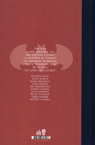 Tim Sale laisse derrière lui des oeuvres cultes. 10 artistes de talent lui rendent hommage avec ce troisieme volet de la saga "Un long halloween".