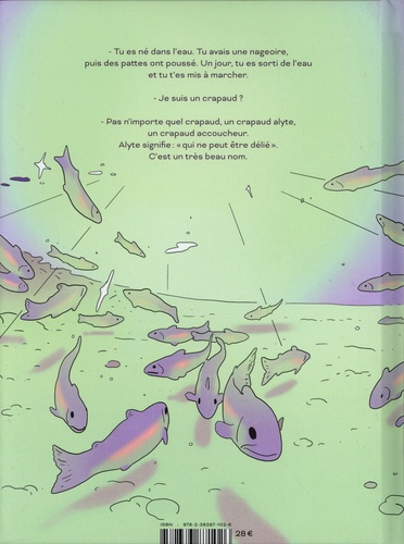 Soudain, un vacarme vrombissant déchire le crépuscule. Lorsque revient le silence, un crapaud gît sur le bitume. Regroupant ses dernières forces, il porte son chapelet d'oeufs jusqu'aux eaux salvatrices de l'étang - et du seul oeuf indemne éclot un têtard orphelin : Alyte est un survivant. A peine né, et déjà il faut se battre ! échapper aux oiseaux, aux ours et autres dieux du monde de la rivière. Heureusement, un saumon lui montre comment se servir des courants et déjouer les pièges. Ce saumon s'appelle Iode, c'est son premier ami. Plus tard, Alyte rencontrera un chevreau et un aigle ; un hibou, et enfin Axon, le plus vieil arbre de la forêt. Chacun d'eux lui parlera du monde à sa façon, l'éveillant à ses beautés. Et bientôt viendra le temps pour Alyte de prendre soin, à son tour, d'un nouveau chapelet d'oeufs. Il lui faudra alors, comme son père avant lui, franchir la léthalyte. Cette ligne droite qui traverse la forêt et gronde à l'approche des animaux. Cette ligne noire qui les fauche sans raison, face à laquelle le minuscule Alyte n'a presque rien à opposer, sinon son immense soif de vie. Après Le Discours de la panthère, Jérémie Moreau continue son exploration du sauvage qui vit à nos côtés, aussi proche qu'invisible. Parmi la multitude de drames qui s'y jouent, il choisit de mettre en scène le plus redoutable : celui de la confrontation avec un monde humain absurde et aveugle, sa violence mortifère, sans but et sans égards. Avec Alyte, un Jérémie Moreau toujours plus virtuose invite son lecteur à changer son rapport au vivant et entrer, comme ce valeureux crapaud, en résistance.