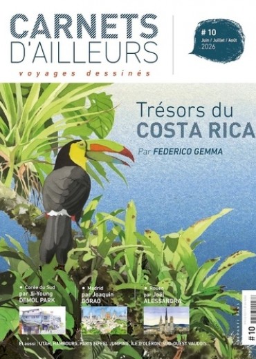 En ouverture de ce numéro : Federico GEMMA, artiste naturaliste italien, s'est rendu au Costa Rica en 2025 pour le compte de CARNETS D'AILLEURS. Ce voyage lui a permis d'exprimer tout son talent en dessinant la faune extraordinaire de ce pays à la pointe de la protection de la bio-diversité : paresseux, grenouilles multicolores, oiseaux spectaculaires, tortues géantes, crocodiles⦠Notre projet : vous montrer le monde avec l'Åil bienveillant des carnettistes les plus talentueux de France et d'ailleurs⦠avec une nouvelle brochette d'artistes connus et moins connus. "Je voyage pour le plaisir de voyager. L'important est de bouger, d'éprouver de plus près les possibilités, les nécessités et les embarras de la vie, de quitter le lit douillet de la civilisationâ¦" écrivit un jour Stevenson. ALORS, PRENEZ DONC LA ROUTE AVEC NOUS !