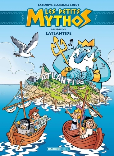 Totor et ses amis embarquent pour la mythique île des Atlantes ! Après les étendues glacées de la mythologie nordique, les déserts chauds de l'Egypte antique et les stades tout aussi bouillonnants des jeux antiques, nos Petits Mythos vous proposent d'arpenter les décors somptueux de l'Atlantide, cette île décrite par Platon et engloutie par un déluge d'eau. Comme pour les précédents volumes hors-séries, l'album se compose de 11 chapitres constitués d'un gag en un dessin, de deux pages didactiques et d'une planche de BD. Les gags sont assurés par Cazenove et Bloz, les pages didactiques sont rédigées par Amandine Marshall (qui, en plus d'être égyptologue, est mythologue) et illustrées par Bloz.