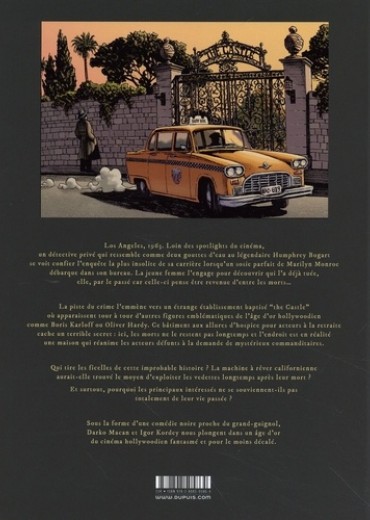 Los Angeles, 1963. Loin des spotlights du cinéma, un détective privé qui ressemble comme deux gouttes d'eau au légendaire Humphrey Bogart se voit confier l'enquête la plus insolite de sa carrière lorsqu'un sosie parfait de Marilyn Monroe débarque dans son bureau. La jeune femme l'engage pour découvrir qui l'a déjà tuée, elle, par le passé car celle-ci pense être revenue d'entre les morts... La piste du crime remmène vers un étrange établissement baptisé "the Castle" où apparaissent tour à tour d'autres figures emblématiques de l'âge d'or hollywoodien comme Boris Karloff ou Oliver Hardy. Ce bâtiment aux allures d'hospice pour acteurs à la retraite cache un terrible secret ici, les morts ne le restent pas longtemps et l'endroit est en réalité une maison qui réanime les acteurs défunts à la demande de mystérieux commanditaires. Qui tire les ficelles de cette improbable histoire ? La machine à rêver californienne aurait-elle trouvé le moyen d'exploiter les vedettes longtemps après leur mort ? Et surtout, pourquoi les principaux intéressés ne se souviennent-ils pas totalement de leur vie passer ? Sous la forme d'une comédie noire proche du grand-guignol, Darko Macan et Igor Kordey nous plongent dans un âge d'or du cinéma hollywoodien fantasmé et pour le moins décalé.