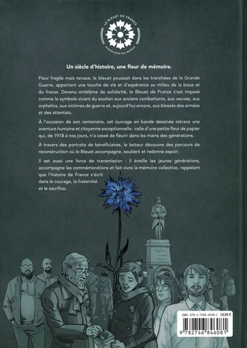 Un siècle d'histoire, une fleur de mémoire. Fleur fragile mais tenace, le bleuet poussait dans les tranchées de la Grande Guerre, apportant une touche de vie et d'espérance au milieu de la boue et du fracas. Devenu emblème de solidarité, le Bleuet de France s'est imposé comme le symbole vivant du soutien aux anciens combattants, aux veuves, aux orphelins, aux victimes de guerre et, aujourd'hui encore, aux blessés des armées et des attentats. A l'occasion de son centenaire, cet ouvrage en bande dessinée retrace une aventure humaine et citoyenne exceptionnelle : celle d'une petite fleur de papier qui, de 1918 à nos jours, n'a cessé de fleurir dans les mains des générations. A travers des portraits de bénéficiaires, le lecteur découvre des parcours de reconstruction où le Bleuet accompagne, soutient et redonne espoir. Il est aussi une force de transmission : il éveille les jeunes générations, accompagne les commémorations et fait vivre la mémoire collective, rappelant que l'histoire de France s'écrit dans le courage, la fraternité et le sacrifice.