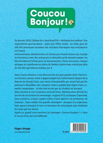 En janvier 2025, l'affaire du faux Brad Pitt fait les choux gras des médias. La victime, escroquée sur Facebook par un brouteur nigérian se faisant passer pour le célèbre acteur américain, a été extorquée de 830 000 euros. Elle n'est néanmoins pas un cas isolé... Entre 2022 et 2023, plus de 5 000 plaintes ont été déposées pour des arnaques amoureuses et les demandes d'assistance face à une escroquerie sentimentale ont augmenté de 91 %. Les escroqueries sont globalement en hausse (250 000 victimes en 2016, 410 000 en 2023), mais l'augmentation est plus forte encore concernant les abus de confiance et de faiblesse. Les escroqueries en ligne visant à voler de l'argent ont fait plus de 160 000 victimes en France en 2023. En 2024, plus de 200 000 personnes ont subi une arnaque aux sentiments en France, à l'image de l'affaire du faux Brad Pitt, qui a suscité de nombreuses moqueries. Pourtant, nul n'est à l'abri face aux techniques toujours plus inventives des brouteurs. Depuis 12 ans (5 ans sur X, ex-Twitter), Métabrouteur invente des canulars pour plonger les brouteurs dans des histoires dont ils sont les acteurs malgré eux. Des jeux de rôle, suivis par plus de 100 000 followers, qui donnent lieu à des échanges rocambolesques et hilarants et qui servent aussi - surtout - d'outil de prévention. Dans Coucou bonjour ! , vous découvrirez ainsi le meilleur des pièges de David - alias Métabrouteur - aux scénarios dignes des meilleures comédies d'Hollywood (le brouteur confondu malgré lui avec un tueur à gages, le kidnapping de la fiancée de Kendji Girac, une vente sur Leboncoin qui n'en finit pas, une romance franco-québécoise aux multiples péripéties...). Mais Métabrouteur sonne également l'alerte. Pédagogue, il vous sensibilise dans cet ouvrage à ce fléau 2. 0, vous explique comment fonctionnent les brouteurs et vous livre ses conseils contre les escroqueries en ligne. Coupons PCS, recharges Transcach, mise en confiance, scripts copiés-collés, numéro Onoff, arnaque à la nigériane, arnaque Interpol... n'auront bientôt plus de secret pour vous !