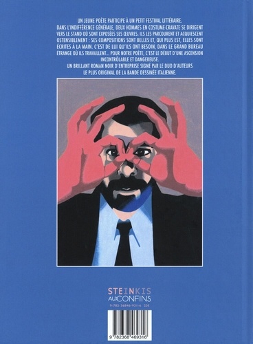 Un jeune poète participe à un petit festival littéraire. Dans l'indifférence générale, deux hommes en costume-cravate se dirigent vers le stand ou sont exposées ses oeuvres. Ils les parcourent et acquiescent ostensiblement : ses compositions sont belles et, qui plus est, elles sont écrites a la main. C'est de lui qu'ils ont besoin, dans le grand bureau étrange ou ils travaillent... Pour notre poète, c'est le début d'une ascension incontrôlable et dangereuse.