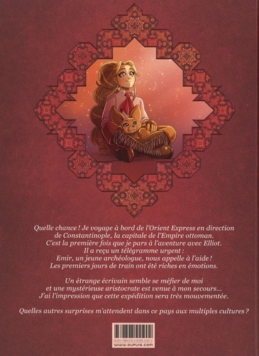 Quelle chance ! Je voyage à bord de l'Orient Express en direction de Constantinople, la capitale de l'Empire ottoman. C'est la première fois que je pars à l'aventure avec Elliot. Il a reçu un télégramme urgent : Emir, un jeune archéologue, nous appelle à l'aide ! Les premiers jours de train ont été riches en émotions. Un étrange écrivain semble se méfier de moi et une mystérieuse aristocrate est venue à mon secours... J'ai l'impression que cette expédition sera très mouvementée. Quelles autres surprises m'attendent dans ce pays aux multiples cultures ?