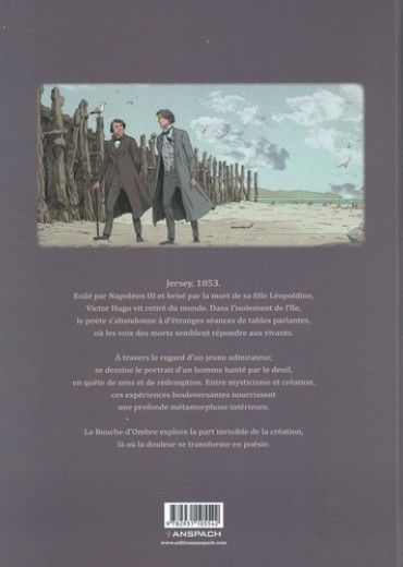 Jersey, 1853. Exilé par Napoléon III et brisé par la mort de sa fille Léopoldine, Victor Hugo vit retiré du monde. Dans l'isolement de l'île, le poète s'abandonne à d'étranges séances de tables parlantes, où les voix des morts semblent répondre aux vivants. A travers le regard d'un jeune admirateur, se dessine le portrait d'un homme hanté parle deuil, en quête de sens et de rédemption. Entre mysticisme et création, ces expériences bouleversantes nourrissent une profonde métamorphose intérieure. La Bouche d'Ombre explore la part invisible de la création, là où la douleur se transforme en poésie.
