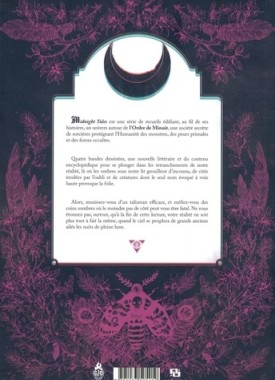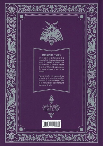 Midnight Tales est un recueil de 16 chapitres et de 5 nouvelles littéraires tissant un univers autour de L'ordre de minuit, une société secrète de sorcières chargée de protéger l'Humanité des monstres, des peurs primales et des forces occultes. Plongez dans les retranchements de la réalité, là où les ombres grouillent d'inconnu, de cités érodées par l'oubli et de créatures dont le seul nom suffit a provoquer la folie.
