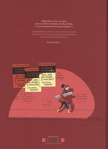" Regardons-nous, les gars... avec ce silence atavique de vieux mâles. Y a que des gonzesses qui participent ! . Cette histoire se passe ici. Ici où rien ne se passe. Ici où personne ne parierait que les événements à venir auront bel et bien lieu. Et pourtant...