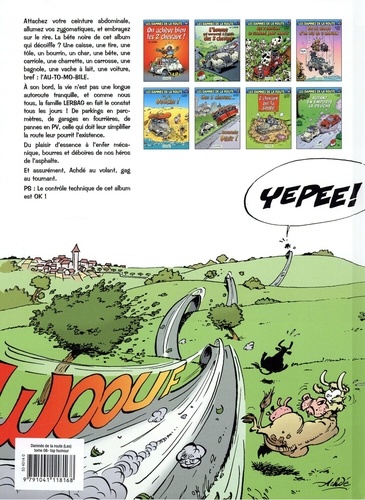 Attachez votre ceinture abdominale, allumez vos zygomatiques, et embrayez sur le rire. La bête noire de cet album qui décoiffe ? Une caisse, une tire, une tale, un bourrin, un char, une bête, une carriole, une charrette, un carrosse, une bagnole, une vache à lait, une voiture, bref : l'AU-TO-MO-BILE. A son bord, la vie n'est pas une longue autoroute tranquille, et comme nous tous, la famille LERBAG en fait le constat tous les jours ! De parkings en parc-mètres, de garages en fourrières, de pannes en PV, celle qui doit leur simplifier la route leur pourrit l'existence. Du plaisir d'essence à l'enfer mécanique, bourres et déboires de nos héros de l'asphalte. Et assurément. Achdé au volent, gag au tournant. PS : Le contrôle technique de cet album est OK !