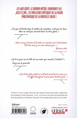 Les 400 Coups, Le Dernier Métro, Fahrenheit 451, Jules et Jim... Les meilleures répliques de la figure emblématique de la Nouvelle Vague ! "Ce qui est triste dans le métier de comédien, c'est que les bons rôles ne sont pas souvent dans les bons films". "Vous savez, l'amour et l'amitié, ça marche avec l'admiration . Eh bien moi, je ne vous admire pas... " Baisers volés "Je te le jure sur la tête de ma mère qui meurt à l'instant ! " Tirez sur le pianiste "Il est des films dont on sait tout avant de les avoir vus, il suffit d'imaginer le pire pour tomber juste ".