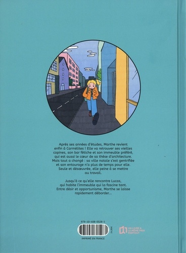 Après ses années d'études, Marthe revient enfin à Carmélites ! Elle va retrouver ses vieilles copines, son bar fétiche et son immeuble préféré, qui est aussi le coeur de sa thèse d'architecture. Mais tout a changé : sa ville natale s'est gentrifiée et son entourage n'a plus de temps pour elle. Seule et désoeuvrée, elle peine à se mettre au travail. Jusqu'à ce qu'elle rencontre Lucas, qui habite l'immeuble qui la fascine tant. Entre désir et opportunisme, Marthe se laisse rapidement déborder...