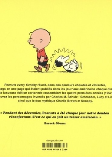 Peanuts every Sunday réunit, dans des couleurs chaudes et vibrantes, tous les gags en une page qui étaient publiés dans les journaux américains chaque dimanche ! Dans cette luxueuse édition cartonnée rassemblant les quatre premières années (1952 à 1955), retrouvez les personnages inventés par Charles M. Schulz : Schroeder, Lucy et Linus, ainsi que le duo mythique Charlie Brown et Snoopy.