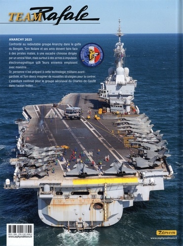 Finalement récupéré par le Charles de Gaulle, Tom alerte sa hiérarchie sur le danger que représente le groupe terroriste à la manoeuvre. Ordre est donné de chercher la base secrète d'Anarchy, mais les appareils de la marine chinoise interceptent les Rafale français et un furieux combat s'engage au-dessus des eaux du golfe du Bengale. Pendant ce temps-là, les hackers d'Anarchy ont investi le Washington afin de poursuivre leur machiavélique plan à base d'armes EMP, auxquelles Tom sera bientôt confronté. Or, personne n'est préparé à de telles armes, et Tom et ses amis devront imaginer de nouvelles stratégies pour les contrer... Team Rafale : LA série aéro, qui va encore vous surprendre et vous raconter le monde géopolitique d'aujourd'hui !