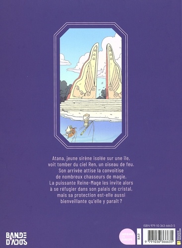 Jeune sirène isolée sur une île déserte, Atana voit tomber du ciel Ren, une jeune oiseau de feu. Les deux filles deviennent rapidement amies, mais Atana n'est pas la seule à avoir remarqué l'arrivée de Ren - bien vite, les deux filles sont poursuivies par des chasseurs de magie, puis invitées à se cacher au palais de l'ancestrale et omnipotente Reine Sorcière. Celle-ci offre sécurité et confort à Ren et Atana, et leur propose même de les aider à éclaircir certains mystères de leur passé. Mais la protection de la Reine Sorcière n'est peut-être pas aussi bienveillante qu'elle n'y parait, et le mystère qui plane entre les murs de son château devient de plus en plus oppressant. Une nouvelle duologie fantastique, signée Vivian Zhou Avec un trait évoquant les studios Ghibli, Vivian Zhou, jeune auteur-illustratrice canadienne, nous livre une épopée magique mêlant mystère, amitié et quête d'identité. Un huis-clos prenant et infiniment divertissant Vivian Zhou jongle habilement entre la tension et la sensibilité, dans une BD d'une élégante simplicité.