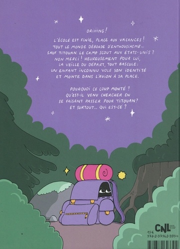 Driiiing ! L'école est finie, place aux vacances tout le monde déborde d'enthousiasme , sauf Titouan. Le camp scout aux Etats-Unis ? Non merci ! Heureusement pour lui, la veille du départ, tout bascule : un enfant inconnu vole son identité et monte dans l'avion à sa place. Pourquoi ce coup monté ? Qu'est-il venu chercher en je faisant passer pour Titouan ? et surtout... qui est-ce ?