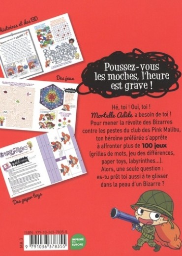 Poussez-vous les moches, l'heure est grave ! L'Extra Mortelle Adèle, c'est plus de 100 jeux et d'activités pour s'amuser avec Mortelle Adèle : BD, jeu des différences, mots mêlés, labyrinthes, pop-up à construire... des heures de jeux en perspective ! Aide Adèle à transformer l'anniversaire de Jade en une journée mortelle et inoubliable ! Seras-tu aussi rusée que ton héroïne préférée ? A toi de jouer ! © Mr Tan et Diane Le Feyer d'après l'oeuvre créée par Mr Tan et Miss Prickly