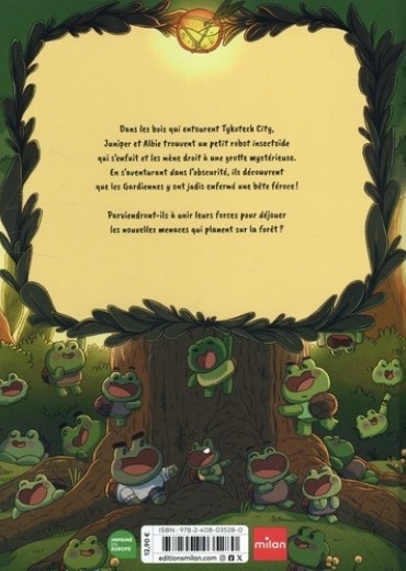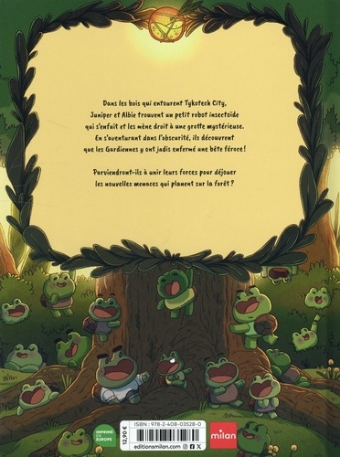 La suite des aventures de Juniper Mae ! En se promenant dans la forêt qui entoure Tykotech, Juniper et Albie découvrent une grotte bâtie par les Gardiennes et qui abrite le dernier des monstres de la forêt. Lorsque la créature s'échappe, Juniper, Albie et leur nouvel ami Lumibot, un insecto-bot reprogrammé, n'ont d'autre choix que de l'affronter, alors que Tykotech est menacée par M. Onyx... Les " Histoires graphiques ", une collection entre l'album et la BD pour les lecteurs dès 7 ans Une collection d'histoires entièrement illustrées pour tous les lecteurs autonomes qui ont soif d'aventure et de longues histoires, et qui ont envie d'images pour accompagner leur lecture. Une mise en page qui alterne de grandes illustrations et des pages dialoguées avec des bulles de BD, pour bien accompagner les enfants dans leur lecture. Juniper Mae : une héroïne forte et attachante Débrouillarde et courageuse, Juniper est une héroïne attachante qui ne recule devant aucun danger pour sauver sa ville et ses habitants, accompagnée d'Albie le tama-tama, devenu son meilleur ami. Un univers à la fois futuriste et merveilleux Juniper vit dans une grande ville où la science et les inventions sont au coeur de la vie quotidienne, mais entourée d'une forêt profonde et luxuriante dans laquelle vivent les tama-tamas, au plus près de la nature. Ces deux mondes ont bien des choses en commun, c'est ce que découvrira Juniper Mae au fil de ses aventures.