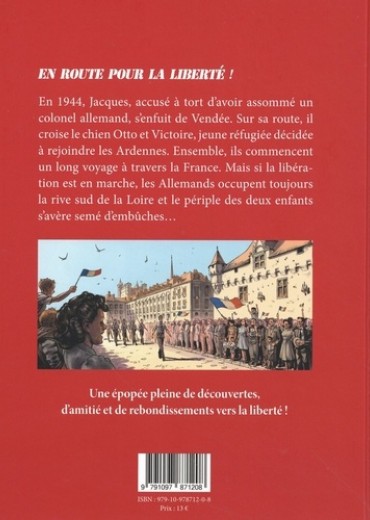 En route pour liberté ! En 1944, Jacques, accusé à tort d'avoir assommé un colonel allemand, s'enfuit de Vendée. Sur sa route, il croise le chien Otto et Victoire, jeune réfugiée décidée à rejoindre les Ardennes. Ensemble, ils commencent un long voyage à travers la France. Mais si la libération est en marche, les Allemands occupent toujours la rive sud de la Loire et le périple des deux enfants s'avère semé d'embûches... Une épopée pleine de découvertes, d'amitié et de rebondissements vers la liberté !