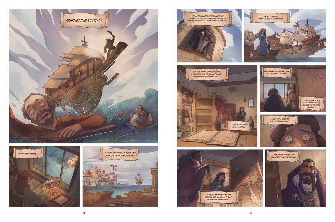 Max a 11 ans, mais surtout de l'imagination et de la timidité à revendre ! Recueilli par son oncle, gardien d'un musée dans lequel il habite, le jeune garçon est particulièrement impressionné par un antique tableau représentant Cornélius Black, sanguinaire pirate surnommé " le Roi des noyés ". Un tableau qui va s'animer lorsque deux antiquaires-cambrioleurs vont tenter de le dérober ! Timide ou pas, Max va dès lors accompagner le terrible Cornélius, piégé dans son tableau depuis des siècles, à la recherche de son légendaire trésor ! Une quête d'autant plus complexe que le pirate colérique a oublié où il a bien pu le cacher... Heureusement que Max pourra compter sur Mirabelle, jeune visiteuse du musée avec laquelle il partage le goût des histoires de pirates... Mais cela sera-t-il suffisant pour cette aventure où le danger guette à chaque instant ?