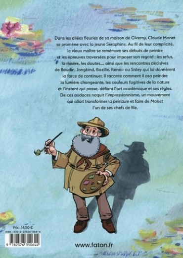 Dans les allées fleuries de sa maison de Giverny, Claude Monet se promène avec la jeune Séraphine. Au fil de leur complicité, le vieux maitre se remémore ses débuts de peintre et les épreuves traversées pour imposer son regard : les refus, la misère, les doutes..., ainsi que les rencontres décisives de Boudin, Jongkind, Bazille, Renoir ou Sisley qui lui donnèrent la force de continuer. Il raconte comment il osa peindre la lumière changeante, les couleurs fugitives de la nature et l'instant qui passe, défiant l'art académique et ses règles. De ces audaces naquit l'impressionnisme, un mouvement qui allait transformer la peinture et faire de Monet l'un de ses chefs de file.