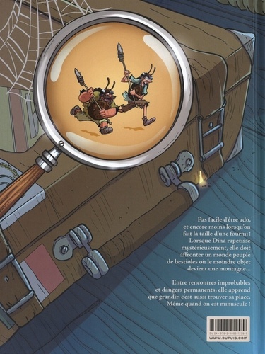 Pas facile d'être ado, et encore moins lorsqu'on fait la taille d'une fourmi ! Lorsque Dina rapetisse mystérieusement, elle doit affronter un monde peuplé de bestioles où le moindre objet devient une montagne... Entre rencontre improbables et dangers permanents, elle apprend que grandir, c'est aussi trouver sa place. Même quand on est minuscule !