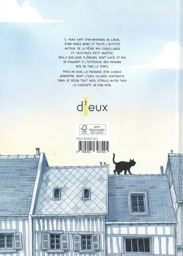 Il aura suffi d'un naufrage au large, d'une marée noire et toute l'activité ? autour de la pêche aux coquillages et crustacés s'est arrêtée. Seuls quelques badauds, dont Lucie et moi, se risquent à l'extérieur des maisons afin de tuer le temps. Mais un jour, la présence d'un curieux bonhomme, dont l'aura colorée contraste dans ce décor tout gris, stimule un peu trop la curiosité de mon ami.