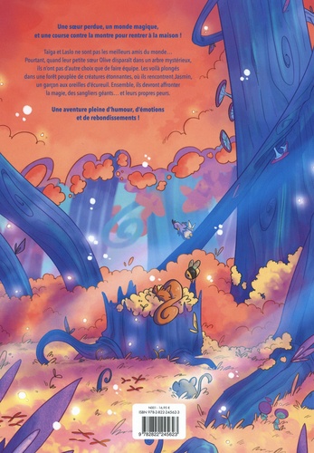 Une soeur perdue, un monde magique, et une course contre la montre pour rentrer à la maison ! Taïga et Laslo ne sont pas les meilleurs amis du monde... Pourtant, quand leur petite soeur Olive disparaît dans un arbre mystérieux, ils n'ont pas d'autre choix que de faire équipe. Les voilà plongés dans une forêt peuplée de créatures étonnantes, où ils rencontrent Jasmin, un garçon aux oreilles d'écureuil. Ensemble, ils devront affronter la magie, des sangliers géants... et leurs propres peurs. Une aventure pleine d'humour, d'émotions et de rebondissements !