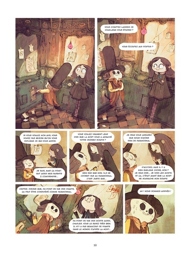 TEINTEE D'HUMOUR, CETTE SERIE D'INSPIRATION GOTHIQUE AUX ACCENTS DE TIM BURTON PROPOSE UNE HISTOIRE COMPLETE PAR ALBUM ET VOUS INVITE A VOYAGER AUX "ROYAUMES MUETS". Souvenez-vous... Perséphone a rencontré la mort l'année de ses douze ans, le jour de la veillée funèbre de son voisin, Victor Columbaria. Et depuis qu'elle l'a aidé à retrouver son dernier soupir, en compagnie de Charles et Théophile, deux collecteurs de derniers soupirs un peu loufoques, les choses ont changé... La Mort leur a, en effet, proposé un contrat afin qu'ils travaillent pour son compte. Ils vont devoir apporter leur aide à un dénommé Méthode, récemment décédé, qui cherche sa défunte femme dans les méandres des Royaumes muets. Mais certains secrets pourraient dissimuler un possible danger...