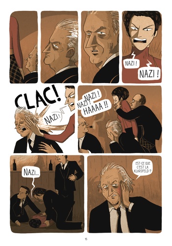 "Si les Allemands nous arrêtent, moi, je survivrai parce que je suis fort mais pas vous" . Ces paroles, prononcées en 1943 par son père, assassiné à Auschwitz, Serge Klarsfeld ne les oubliera jamais. Après la guerre, il se marie à Beate, une jeune allemande installée à Paris. Ensemble, ils se font la promesse d'obtenir la mise à l'écart de la vie politique allemande de tous les anciens nazis, puis d'obtenir le jugement et la condamnation des principaux responsables nazis de la déportation, notamment ceux ayant sévi en France. Distribution de tracts, manifestations, tentatives d'enlèvements, la "méthode Klarsfeld" prouve leur obstination à débusquer les anciens criminels de guerre qui vivent paisiblement en toute impunité alors que, durant la guerre, ils occupaient des postes officiels, soit comme gradé nazi avec Lischka, Hagen, ou Barbie soit en tant que collaborateurs français comme Papon, Bousquet ou Touvier... Dans ce roman graphique, Pascal Bresson (le sécnariste de Simone Veil) revient sur les combats de la vie de Beate et Serge Klarsfeld pour que justice soit rendue et que nul n'oublie. Un ouvrage très fort pour l'histoire, la mémoire et la justice, brillamment mis en image par Sylvain Dorange.