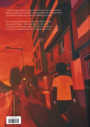 "Certains événements nous transforment et d'autres nous façonnent. Mais la mémoire, elle, immuable, resurgit parfois, telle une plaie béante qui déchire le présent pour raviver les cendres du passé." Ancien membre de l'équipe de France de MMA et boxeur élite national, Rakajoo, désormais figure montante de la peinture contemporaine, signe un thriller social haletant, à la croisée du réalisme urbain et de l'énergie du comics.