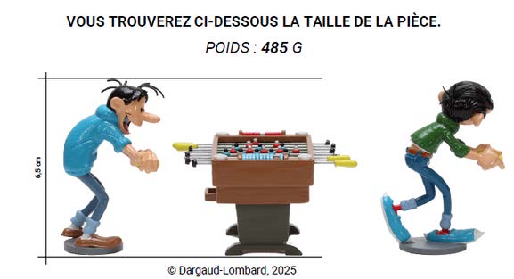 Redécouvrez l'univers délirant de Gaston Lagaffe avec cette superbe figurine Pixi classique représentant Gaston et Lebrac autour du babyfoot. Fabriquée en métal et résine, cette pièce est finie et peinte à la main, garantissant un haut niveau de détail.