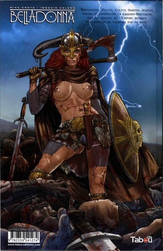 Dans un siècle de sang et de feu, dans le nord celtique britannique, Belladonna, guerrière Viking, est à la tête d'une armée de femmes. Ces combattantes mènent une guerre féroce contre les Pictes alliés à des êtres fantastiques, cruelles et mythiques. Dans un paysage sombre et impitoyable, Belladonna mettra sa force surnaturelle et son anatomie sculpturale pour mener à bien son combat. Compilation des premiers comics de la série parus aux USA, cette version française est très convoitée par les férus du genre. Entre Red Sonja et Xenia, Belladonna est un album qui associe aventures épiques et érotisme.